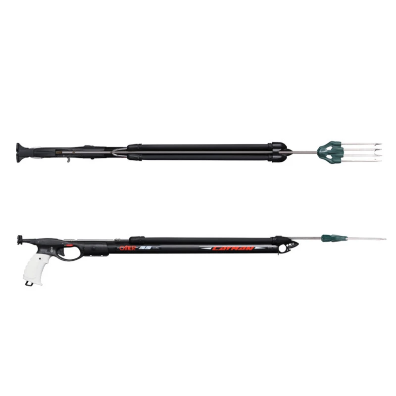 Elle est constituée d’un tube avec un guide flèche intégré et de sandows Power 18, ce qui la rend parfaite pour la chasse en bordure de rochers. Sa flèche en inox de 6,5 mm avec une tête filetée et une fouine de 4 dents Mustad est également adaptée à cette activité.