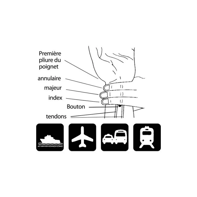A chaque poignet existe un point d’acuponcture, le Nei-Kuan. En stimulant ce point on peut contrôler les états nauséeux.